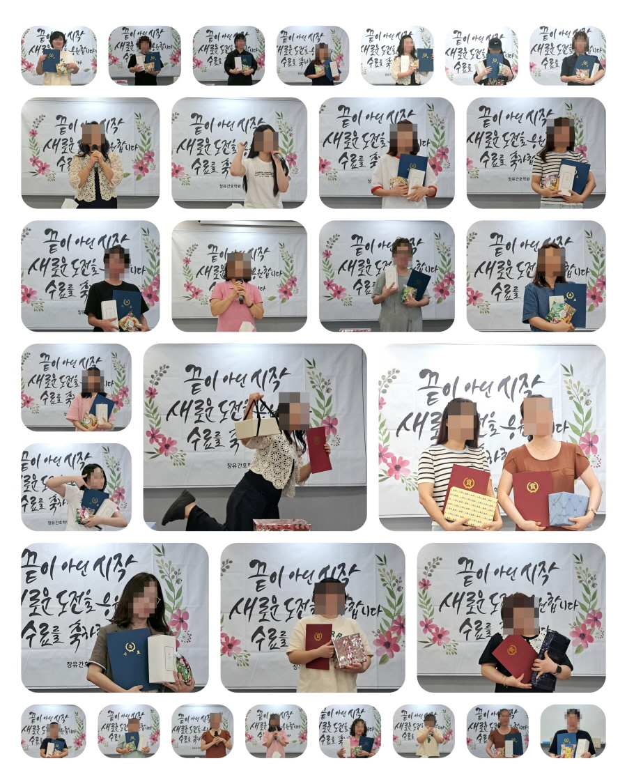 11개월의 과정을 모두 마치고 수료하게 된 30기 주간반 수강생들입니다.자격시험에도 전원합격하여 이제 취업의 길만 남았어요!장유간호학원은 전원 합격, 전원 취업을 목표로 항상 최선을 다하고 있습니다.